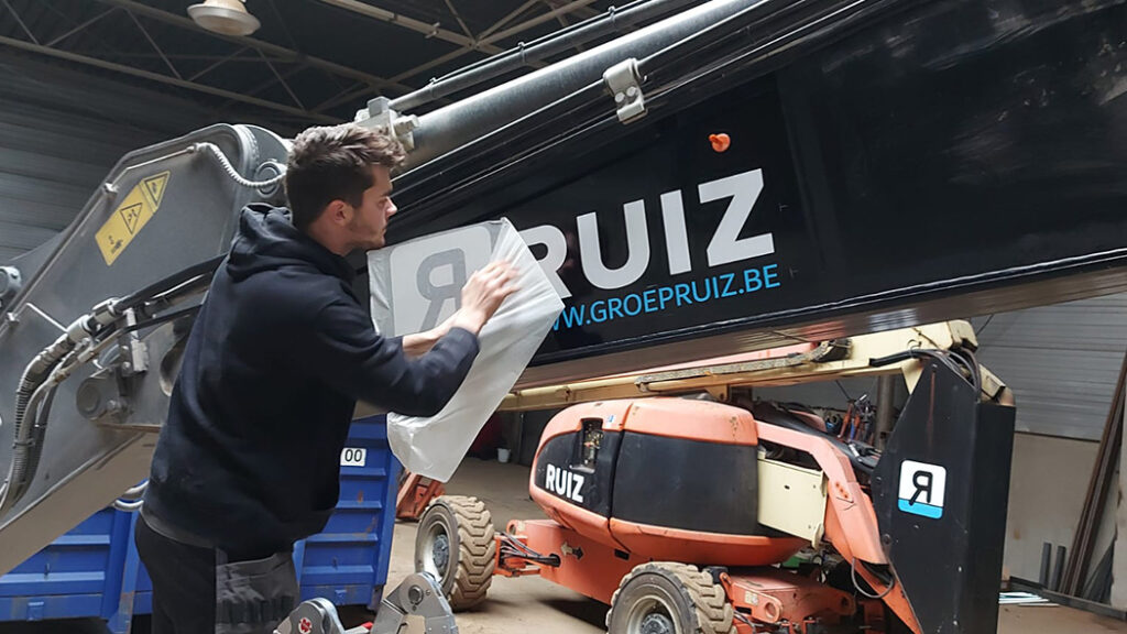 Voor RUIZ hebben we gezorgd voor een uniforme en professionele uitstraling door het personeel te voorzien van hoogwaardige werkkledij. Daarnaast hebben we het volledige wagenpark, van camionettes tot zware graafmachines, voorzien van strakke bestickering en wrapping voor maximale herkenbaarheid op elke werf.