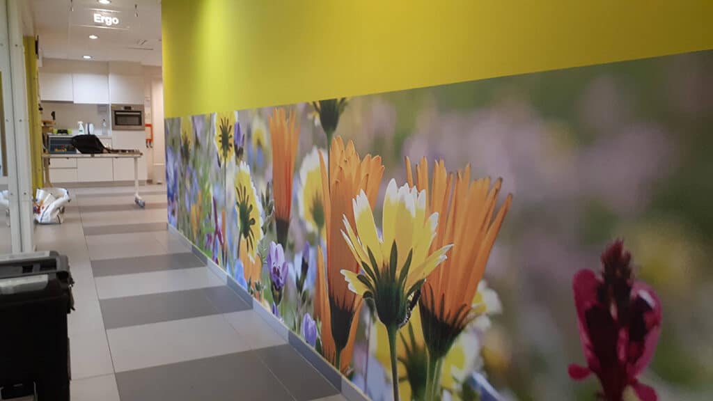 Voor SFZ hebben we diverse afdelingen een volledige visuele upgrade gegeven met op maat gemaakte raamfolies en hoogwaardige muurprints. Daarnaast hebben we de keukens en het meubilair voorzien van een strakke wrap, waardoor het interieur nu weer een moderne en frisse uitstraling heeft die perfect aansluit bij de werkomgeving.