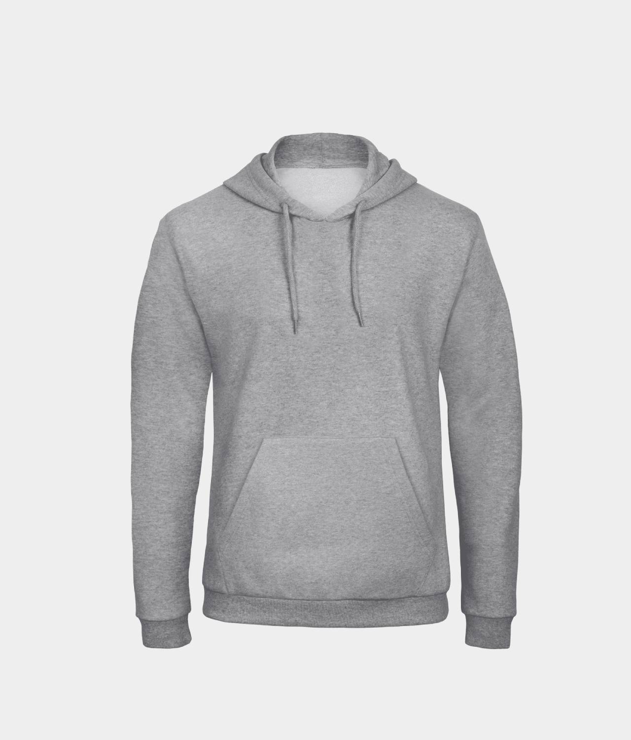 50% katoen / 50% polyester. Fleece binnenkant. Tailleband, mouwuiteiden en kraag in 1×1 elasthan rib voor een perfecte pasvorm. Dubbel gestikte naden aan de armsgaten en halslijn. Kangoeroezak. Tweedelige capuchon met een ronde toon op toon trekkoord. Ingezette mouwen. Zijnaden. Unisex. “B&C No Label” voor een perfecte rebranding.