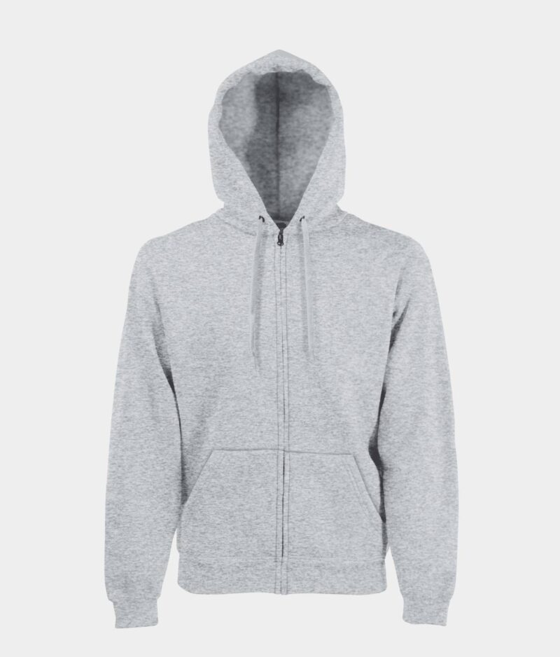 Heather Grey – 260 g/m². 80% katoen / 20% polyester (Dark Heather Grey 60% katoen / 40% polyester). Gevoerde capuchon met jersey nektape. Platte aanrijgkoordjes in dezelfde kleur. 2 ‘kangaroe’ voorzakken. Volledige verborgen ritssluiting. Mouwuiteinden en onderkant in rib katoen / Lycra®.