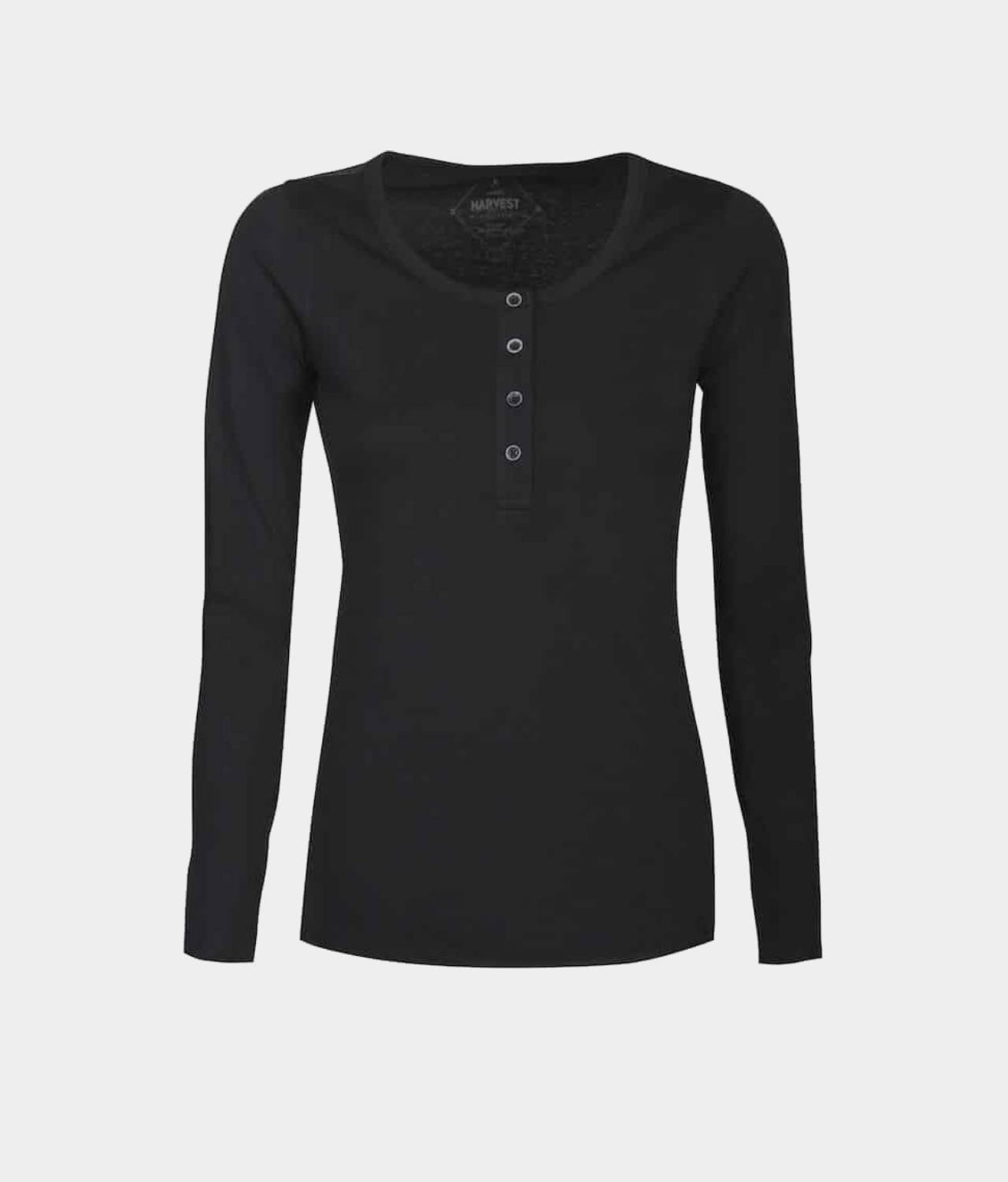 T-shirt met lange mouwen, vierknoopsluiting en contrasterende naad op de schouders. De t-shirt is in slubkatoen waardoor het materiaal een gemêleerd effect krijgt.