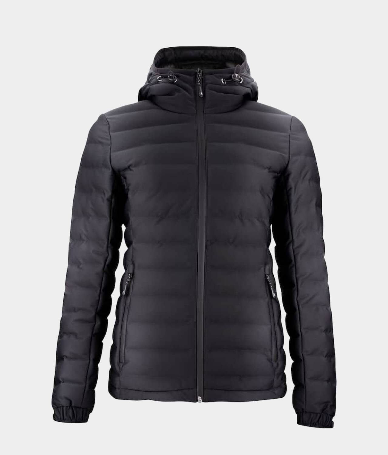 Gevoerde winterjas. Omgedraaide, waterdichte ritssluiting vooraan en aan de zijzakken. De zijzakken zijn aan de binnenkant afgewerkt samen met de zoom zodat deze als binnenzakken gebruikt kunnen worden. Aanpasbare drukknoopsluiting aan de manchetten. Aanpasbare capuchon met elastische trekkoorden aan de zijkanten, afgewerkt met een elastische bies aan de zoom.