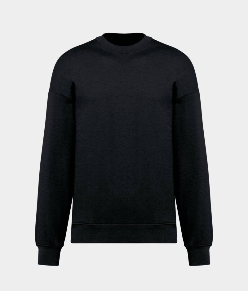 85% katoen / 15% polyester. Gemaakt van 85% biologisch katoen en 15% gerecycleerd polyester post-consumer. Aan de binnenkant geborsteld fleece 3?draden. Enzymgewassen. Oversized model. 1×1 ribboord aan kraag, mouwuiteinden en onderkant. Toon-op-toon nektape en halvemaanvormige afwerking voor eenvoudige personalisatie van het merk aan de binnenkant van de kraag. Geen merklabel in de kraag, maar enkel een maatlabel voor eenvoudige personalisatie.