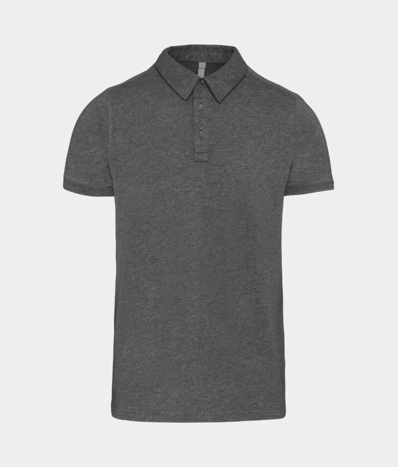 100% gekamd katoen (French Navy Heather: 80% katoen / 20% polyester – Grey Heather: 65% polyester/35% katoen – Oxford Grey : 90% katoen / 10% viscose). Jersey. Hemdskraag. Knooplijst met 3 metalen knopen. Inzetstuk op de schouder. Afgewerkt met ribboord aan de mouwuiteinden. Dubbel stiksel aan de onderkant.