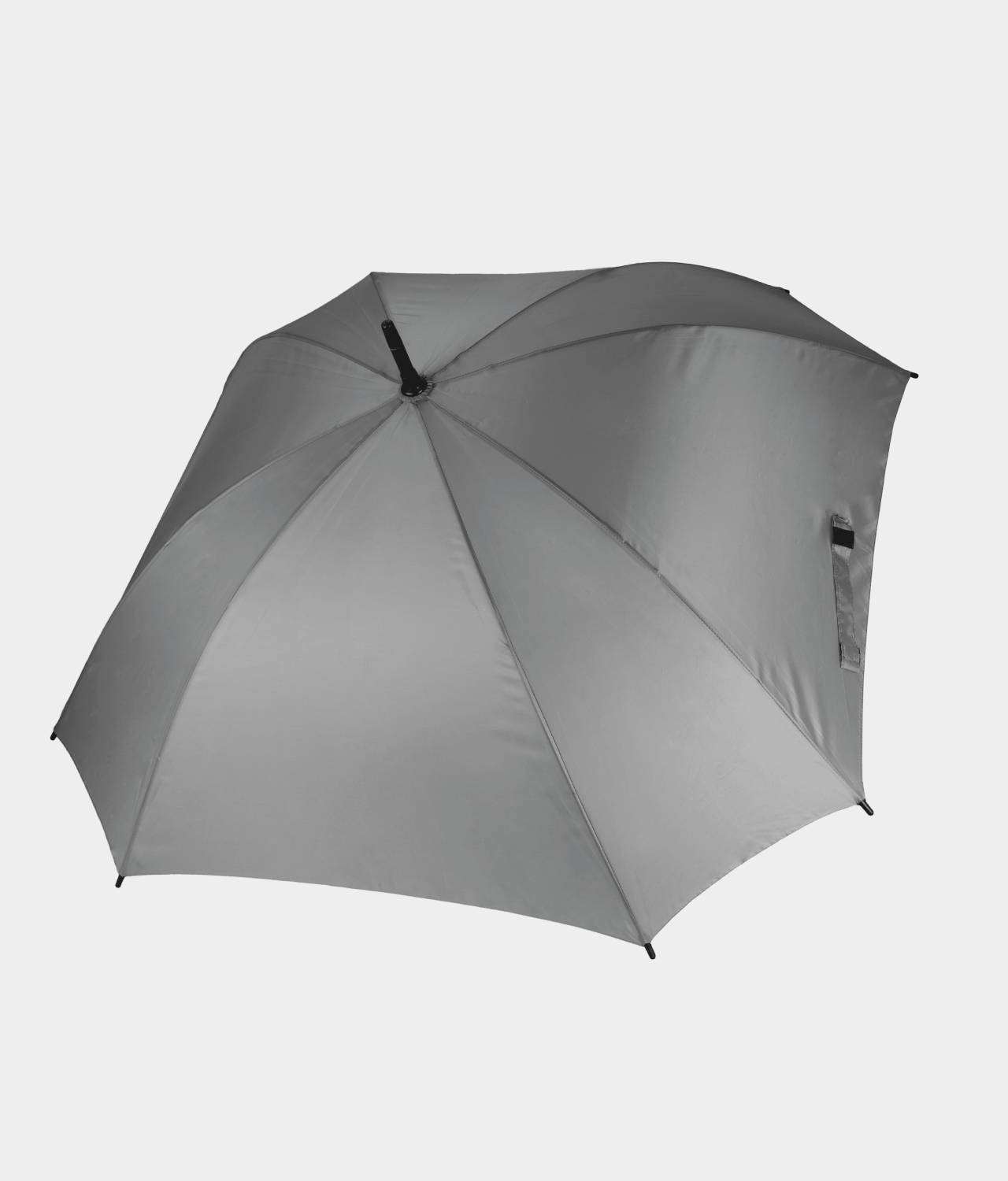 23″ (58.5 cm) vierkantee paraplu. 8 panels. Handmatige opening. Stok en baleinen van glasvezel. J handvat van polypropylene. Plastic punten. 210T polyester.