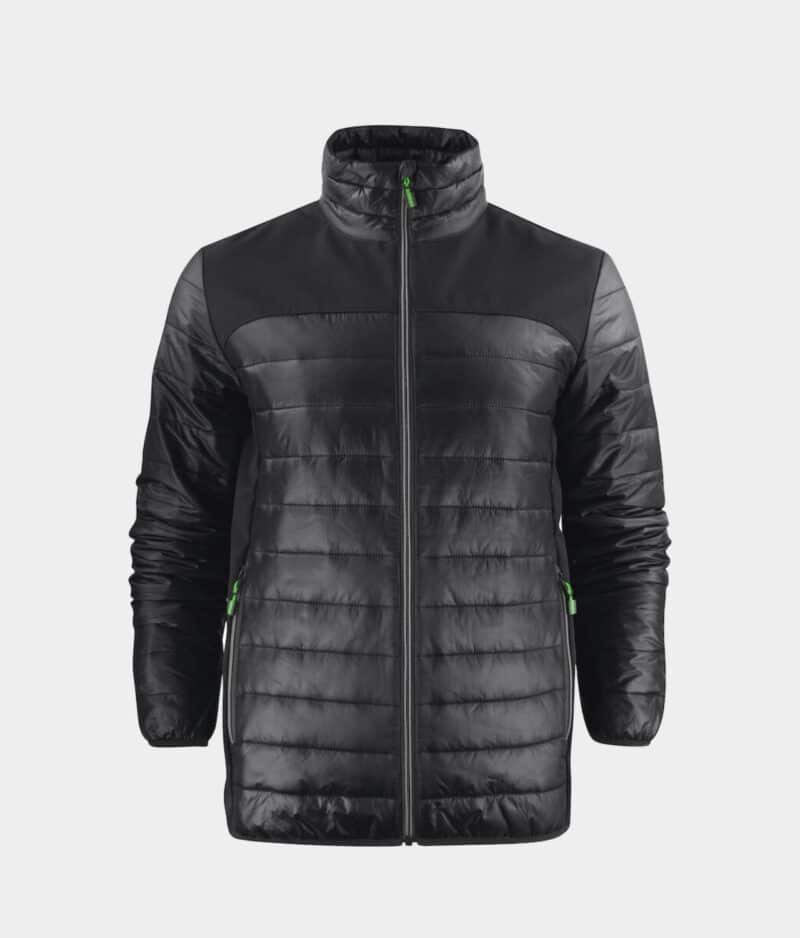 materiaal 2) 100% polyester met “Bluesign” wattering (body: 100 g/m², mouwen: 80 g/m²)