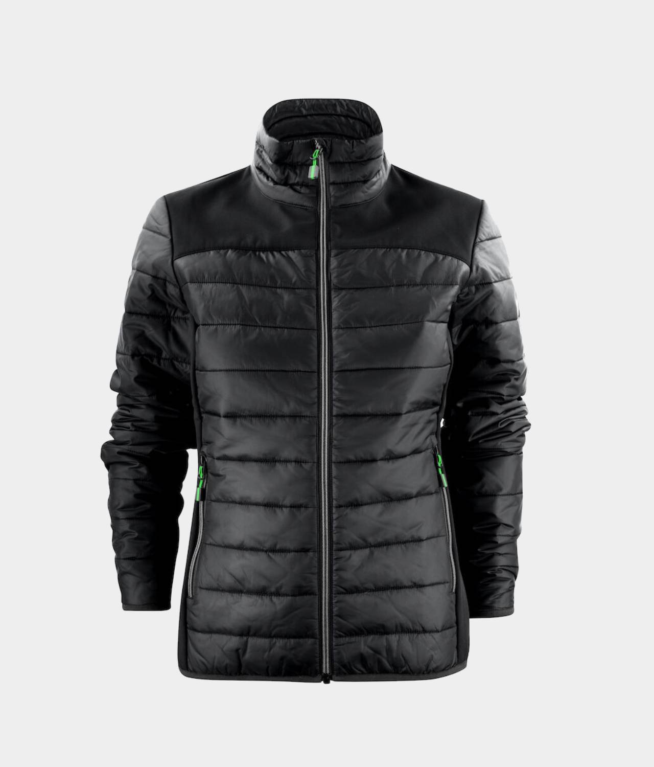 Lichte jas in twee materialen: juk en zijpanelen in softshell en body (voor-en achterkant) en mouwen in een ander lichtgewateerd materiaal. Trekkoord onderaan de zoom. Tweekleurige ritssluiting en zippullers in contrasterende kleur. Deze kunnen indien gewenst