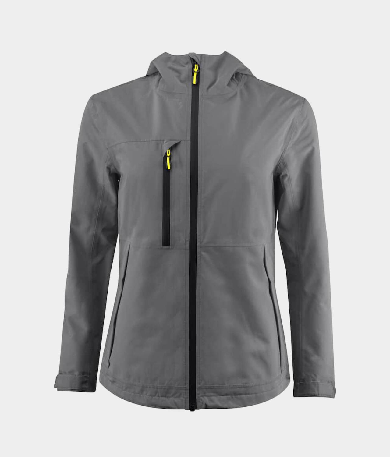 Functionele shell jas met getapete naden. Waterdichte ritssluiting vooraan en aan de borstzak. Omgedraaide nylon ritssluitingen aan de zijzakken. Aanpasbare velcrosluiting aan de manchetten. Mesh binnenvoering met borduurrits. De capuchon en de zoom zijn aanpasbaar met elastische trekkoorden. Zipper pullers in contrasterende kleur. Deze kunnen indien gewenst vervangen worden door één van de andere beschikbare kleuren. Dit artikel is verpakt is een composteerbare polybag.