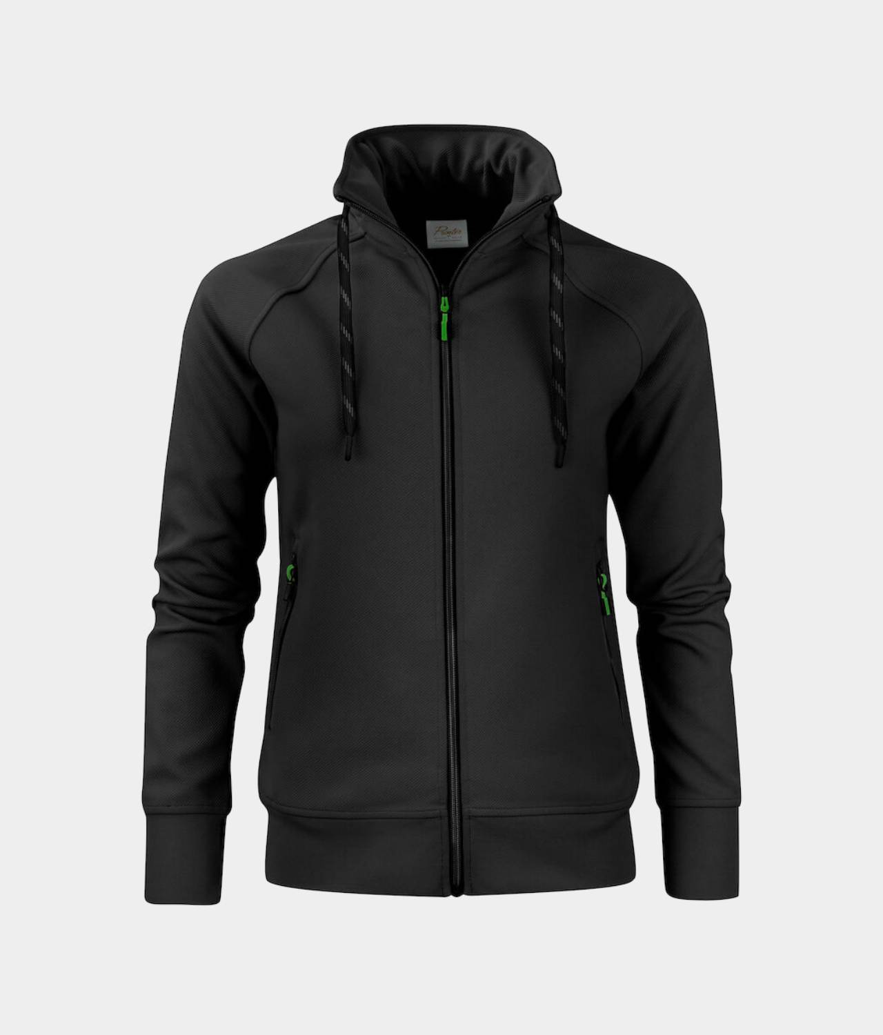 Polyester sweatshirt met raglanmouwen en een tweekleurig trekkoord. Ritssluiting vooraan en aan de zijzakken met contrasterende zipper pullers. Verborgen ritssluiting in de kraag om makkelijk het trekkoord te vervangen.