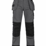 • twee zijbeenzakken: linker: ruimte voor telefoon, pennen, gereedschappen; rechter: twee aanpasbare hamerhouders, potloodzakje, duimstokzak en mesknoop