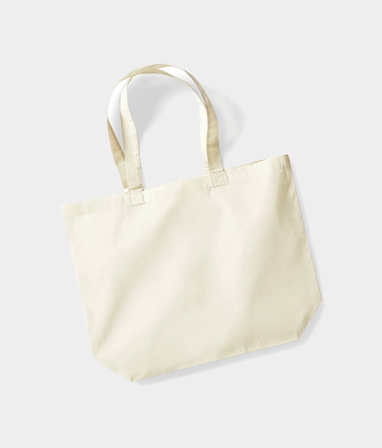 100% katoen. Grote inhoud. Om aan de hand of de schouder te dragen. Lengte van het hengsel: 58 cm.